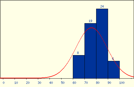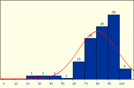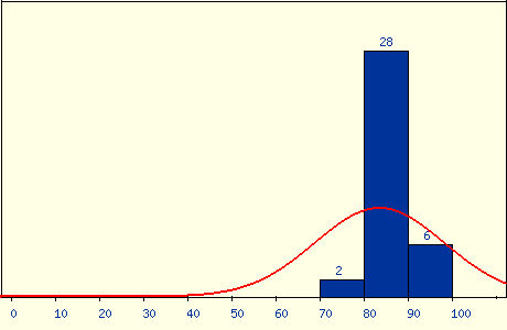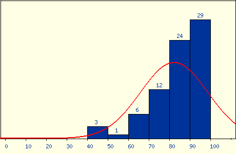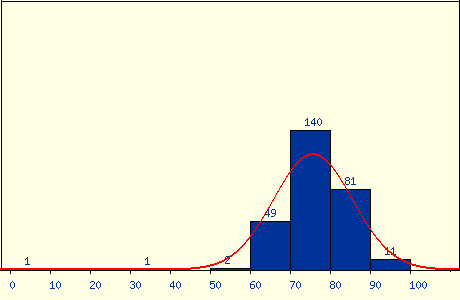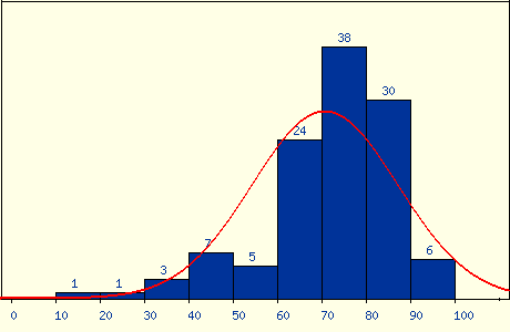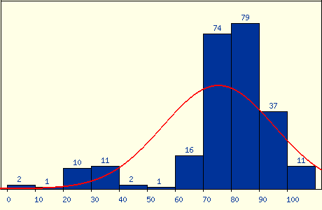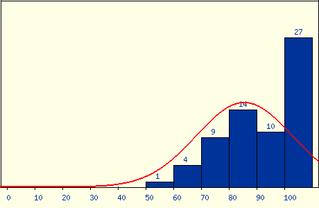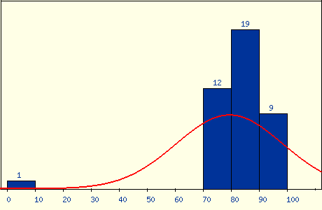 最後期末考老師應該算是大放水,出了很簡單的題目,雖然考了 82.5 分,但在班上大概還是只能排在一半吧,不過也還算是能接受。結算成績的時候,老師直接大調分,有一堆人學期成績拿到 99 分,我的成績也從 7 字頭被調到 86 分,是讓我相當滿意的成績,雖然不知道這學期真的有學到東西嗎,但好老師還是推。成績分佈: