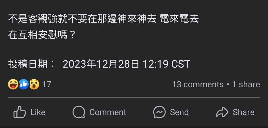 但不得不說,問問題的學生本身也有點問題,講者是總統候選人級別的講者,問那什麼小孩問題?你問柯文哲電機系太內卷怎麼辦?要不要給學生一點建議?問就是回家繼續讀書,電機系一天不談成績會死是不是?