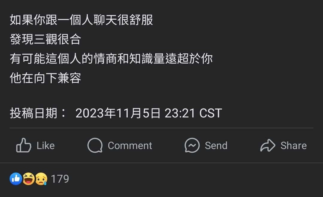 不知道是不是發現自己朋友越來越少了,這學期我也開始思考人與人之間的關係(?)。或許以前我高中的時候對於大學有很多錯誤的想像和認知。直到最近,我才意識到生活還是要以自己為重,不然再虛幻都只是假的。
