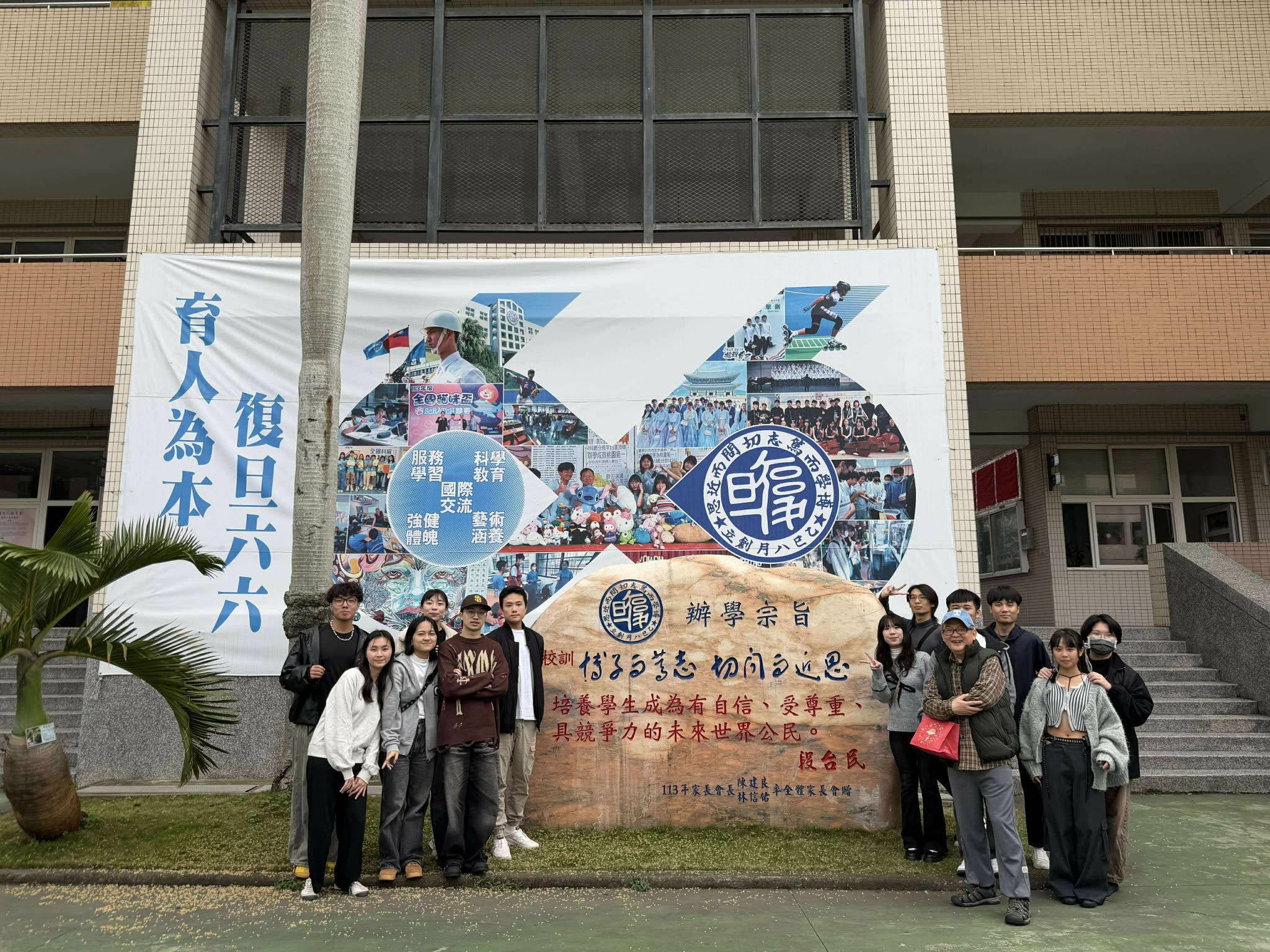我們坐了一桌,聊著現在還有以前,還有復旦的一些內幕八卦。我們也去隔壁桌找了高中班導,也是聊得很開心,顯然她非常開心見到我們。吃飽以後,我們到校園走走,不能理解為什麼廁所會有免治馬桶,辦公室的擺設好像也跟之前不太一樣。我們一起在中庭拍照,天氣非常好,不知道下次回復旦又是幾年後了。