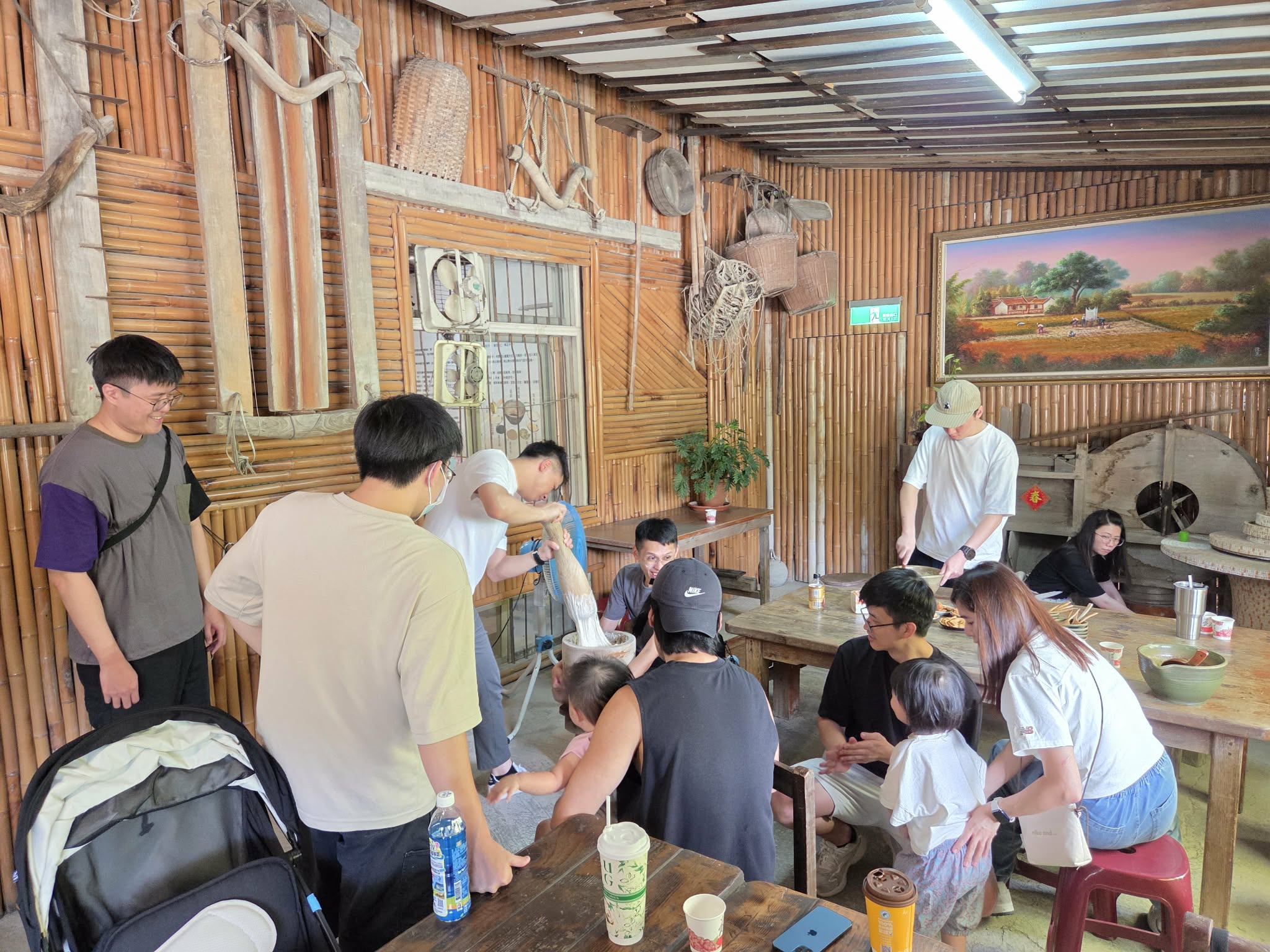 我們在擂茶坊磨擂茶和搗麻糬,每個人輪流上去動幾下,結果發現還是挺累的。之後大家吃點麻糬和喝點擂茶,下個景點前往南庄老街,只能說人非常多,而且又特別熱,我們吃完湯圓冰之後就去飯店了。